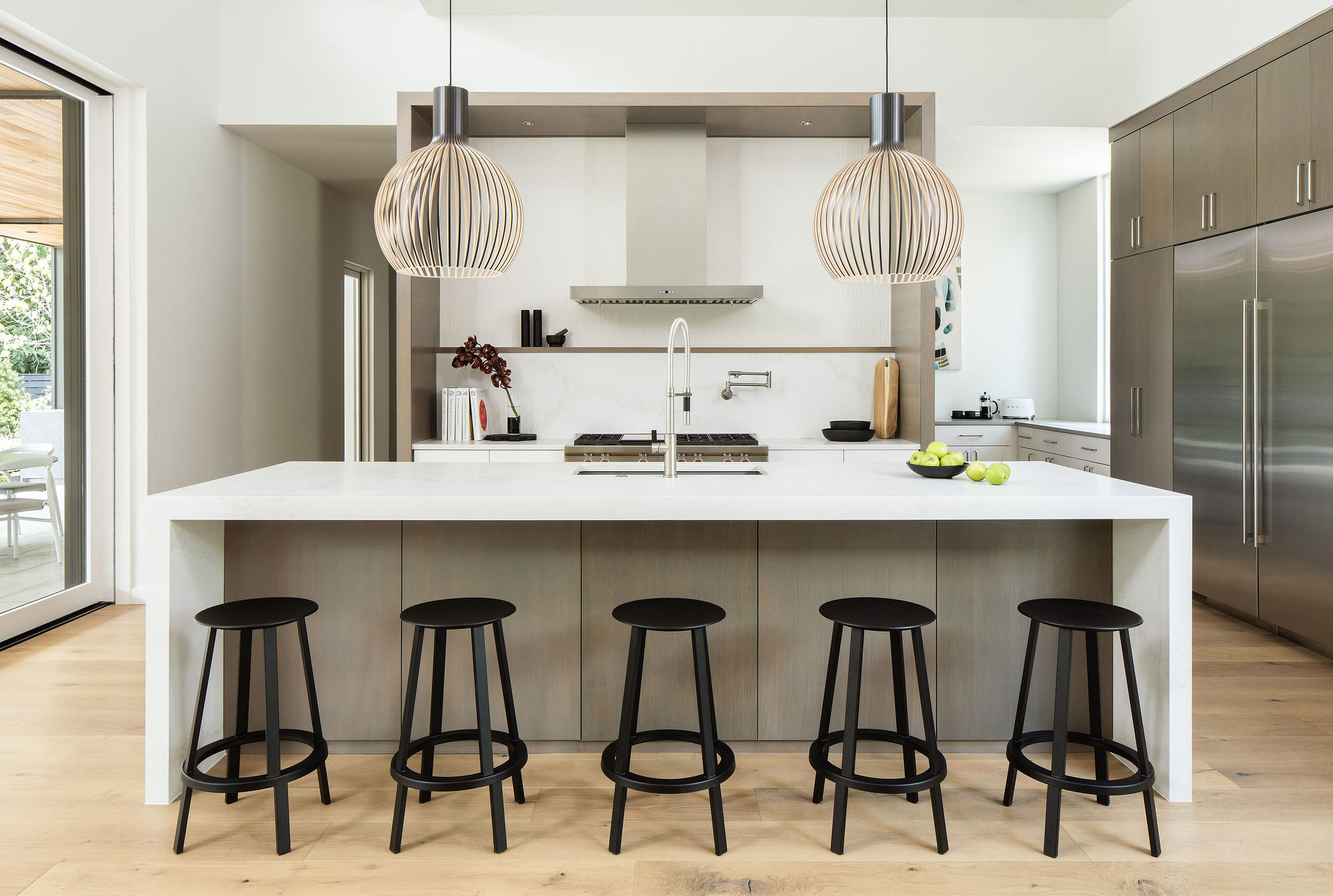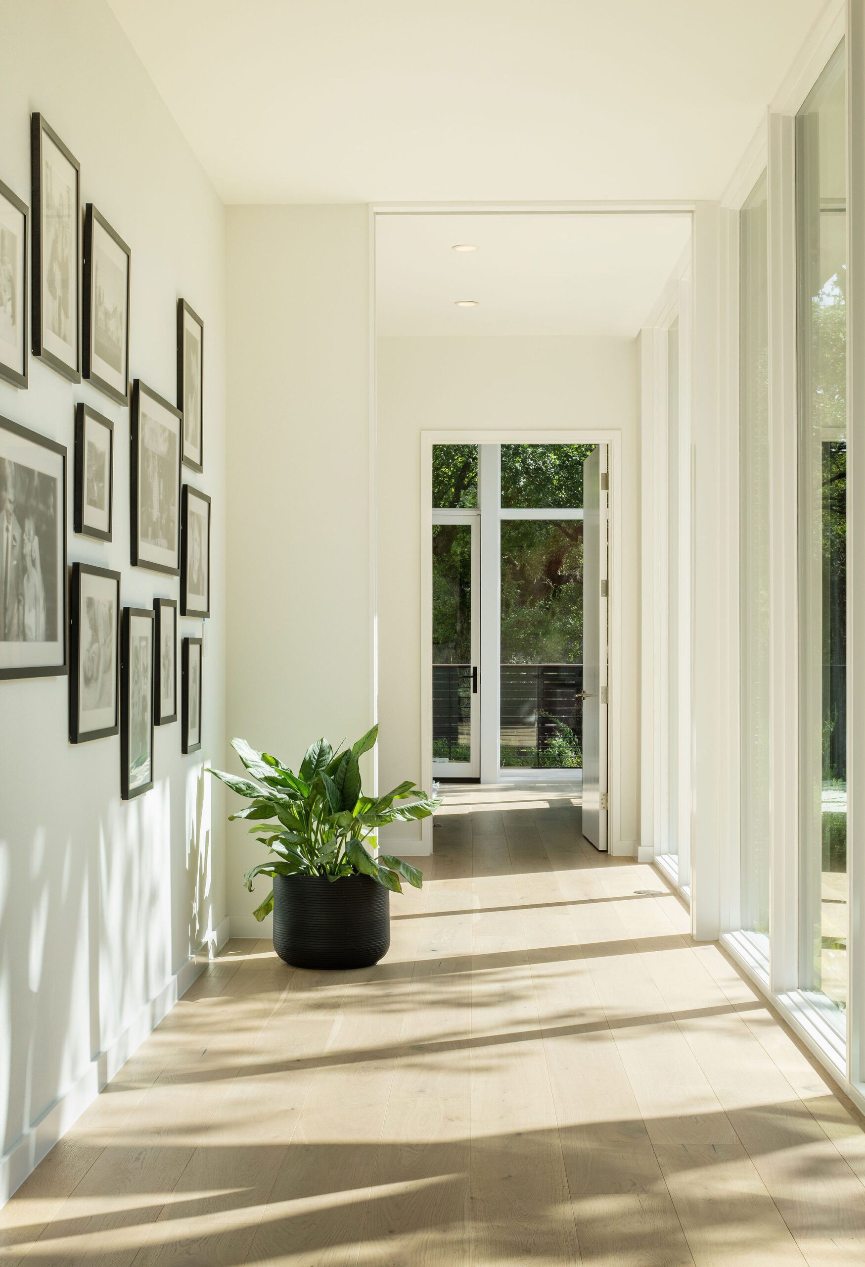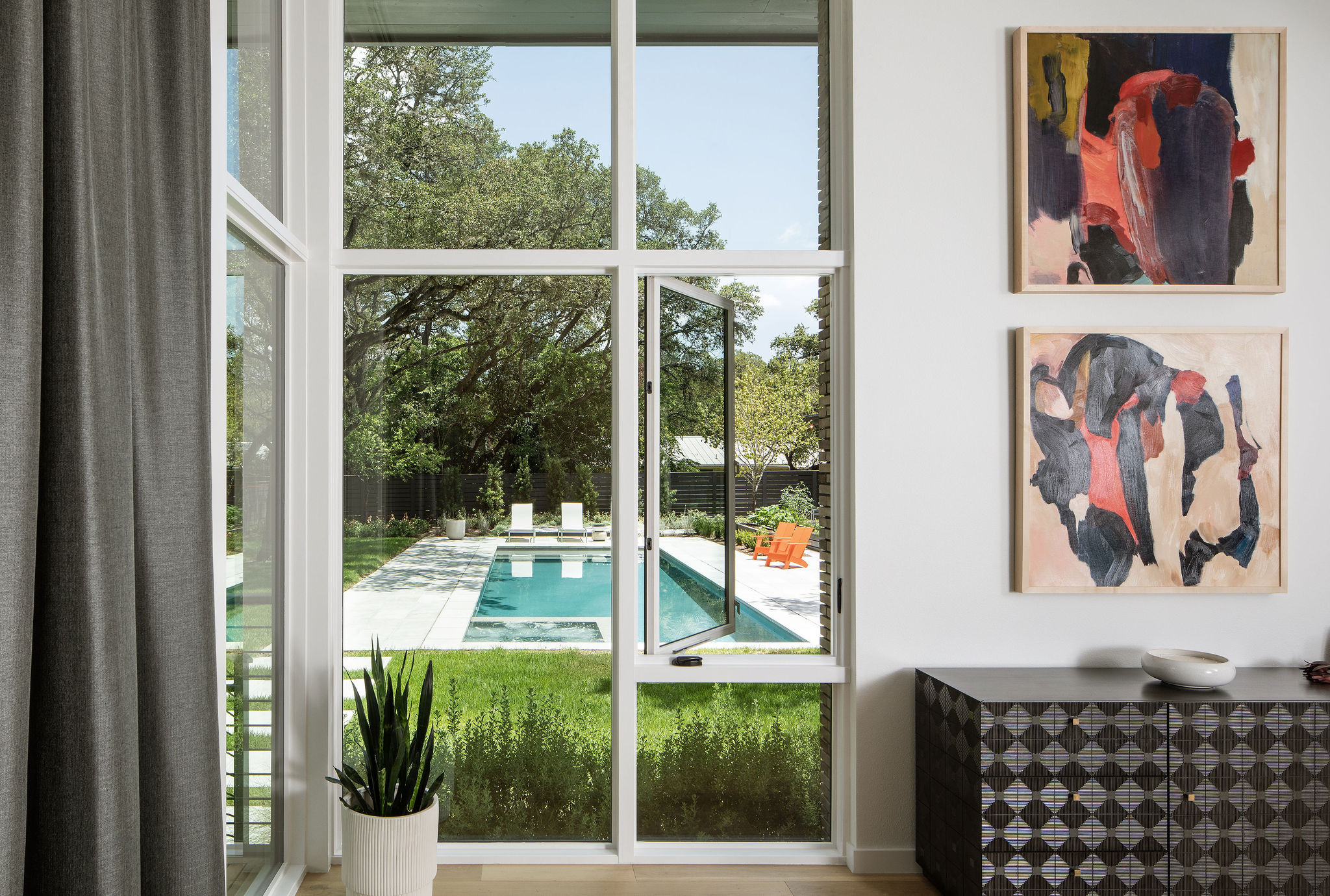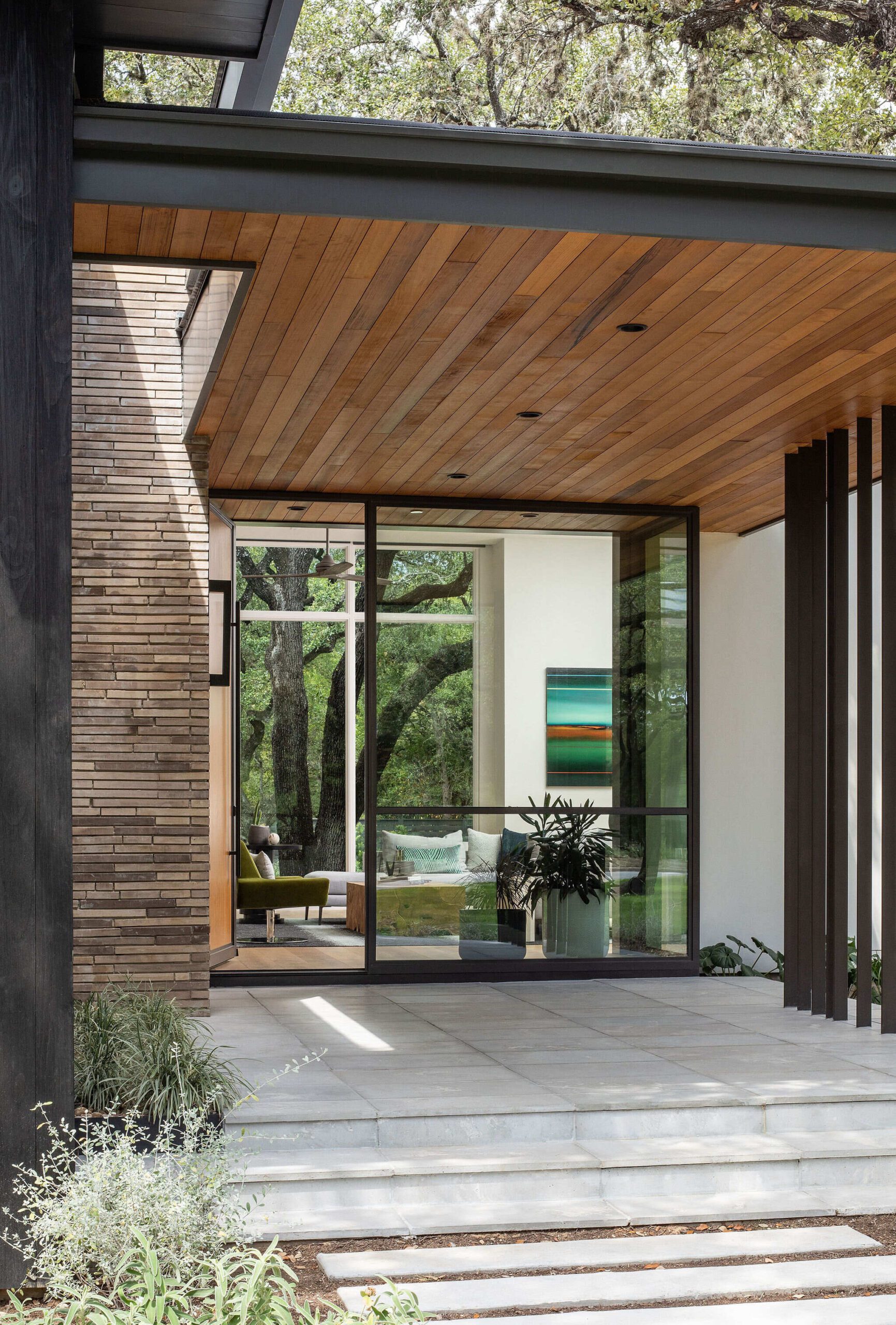 Located in the heart of the eclectic Barton Hills neighborhood, this contemporary custom residence provides a true sense of indoor/outdoor living as it is nestled amongst a grove of heritage oak trees on nearly an acre lot. Balancing natural materials that blend from outside in, with sharp modern detailing, the result is a home that effortlessly combines an elevated sense of warmth punctuated by the colorful energy of the urban neighborhood.